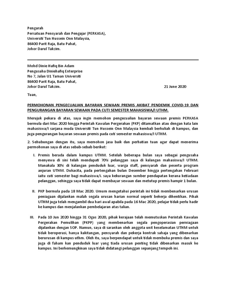 Contoh Surat Rayuan Pengurangan Bayaran Sewa Kedai - Tentu kita harus mentaati segala peraturan yang berlaku pada perusahaan tersebut.. Tentu masalah ini, menjadi masalah umum bagi kita semua. Contoh surat rayuan an universiti, contoh surat permohonan, contoh surat rayuan , rayuan ke universiti. Dibawah perenggan ini adalah contoh surat rasmi. Contoh surat rayuan pengurangan bayaran. Contoh surat penangguhan bayar pinjaman mara via ighoh.blogspot.com.
